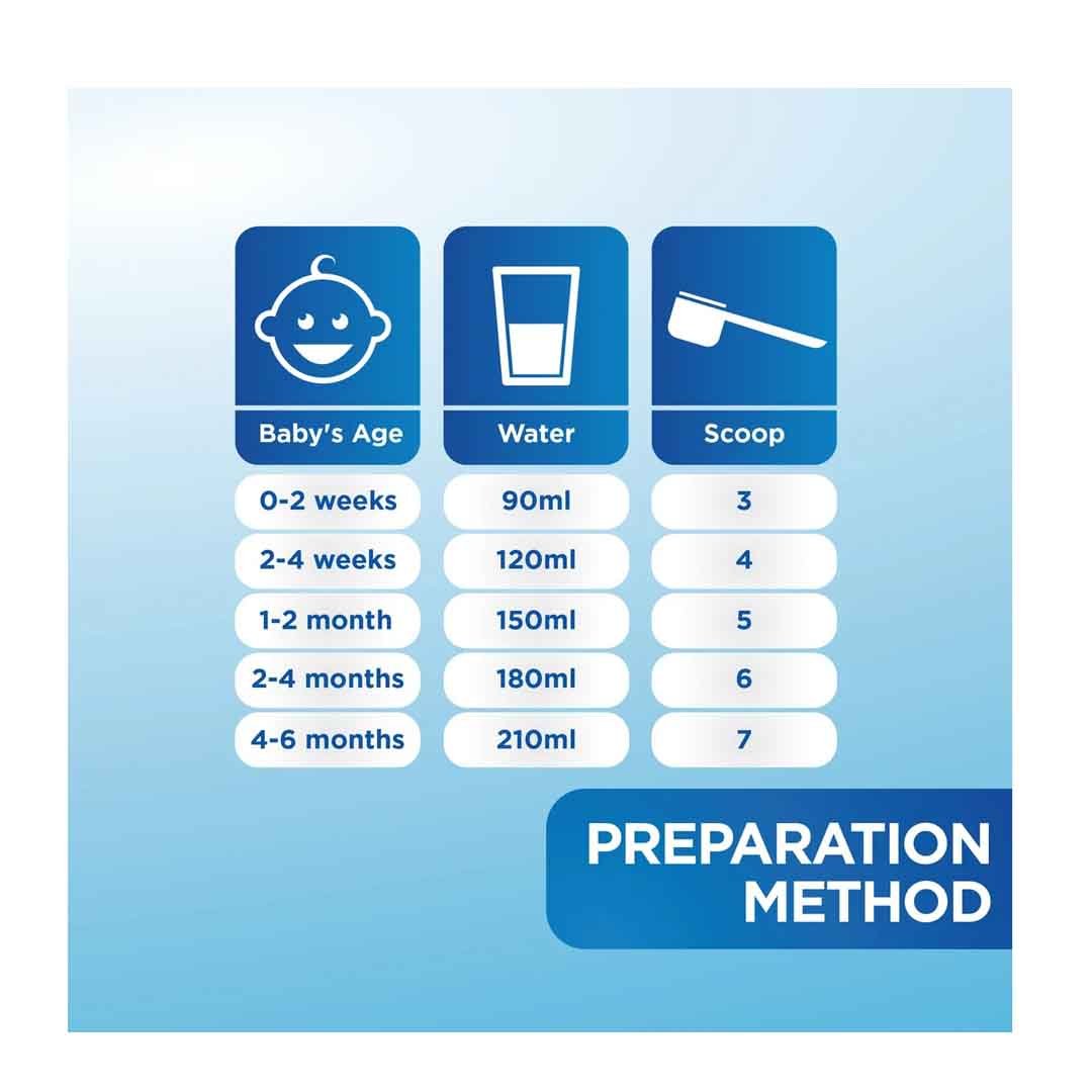 Add the correct measure of powder to the water. Adding too many or too few scoops can be harmful to your baby.