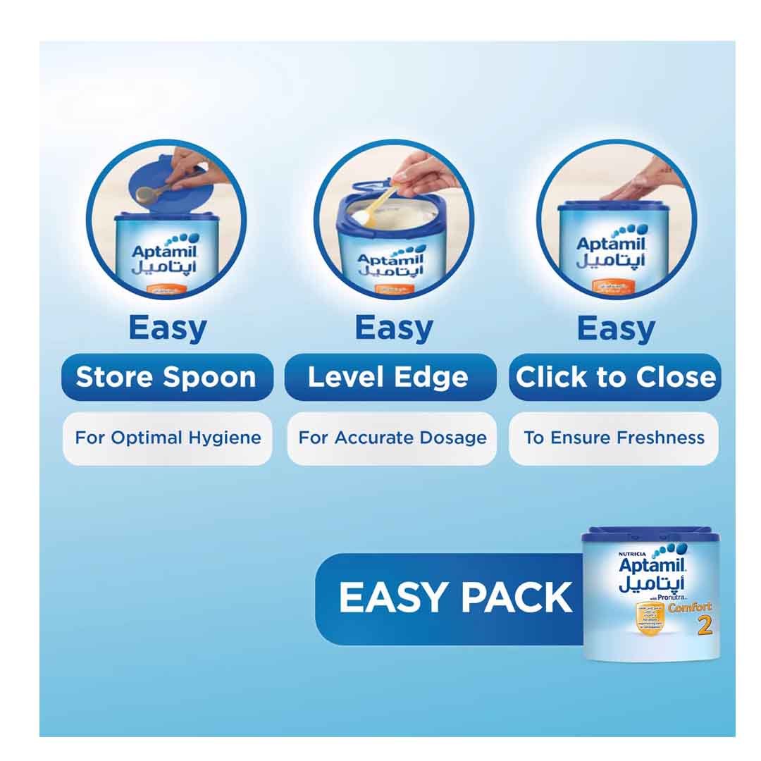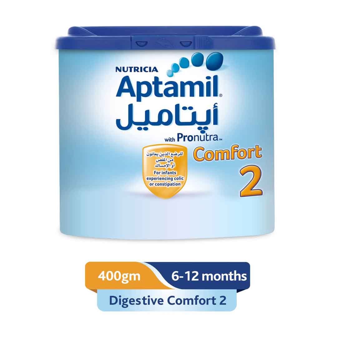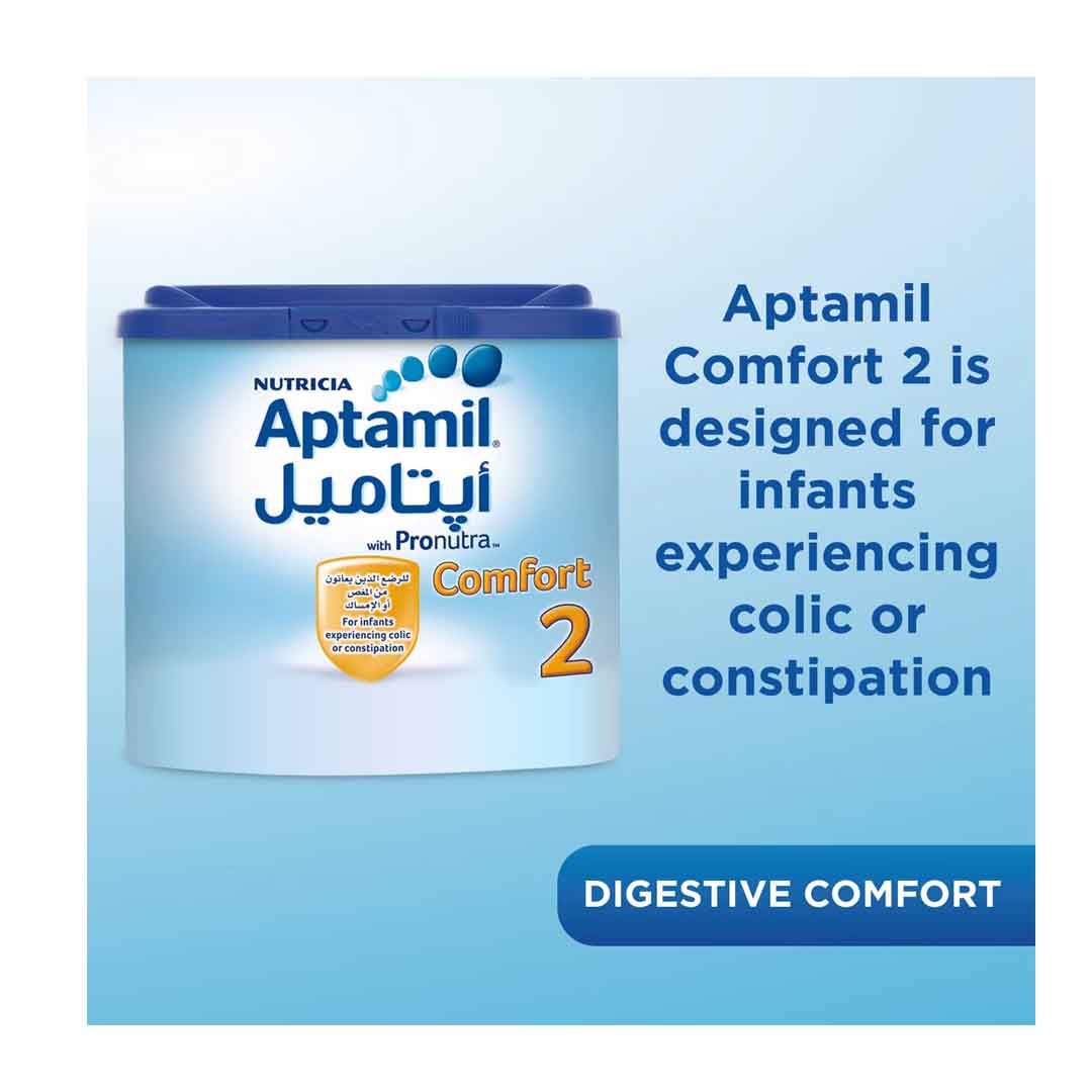 Aptamil Comfort 2 is a special follow on formula milk designed for babies who suffer from colic or constipation. Its nutritionally tailored formula contains partially broken down whey protein and less lactose (than standard milks) that make it more easily digested, shortens stools and reduces digestive discomfort