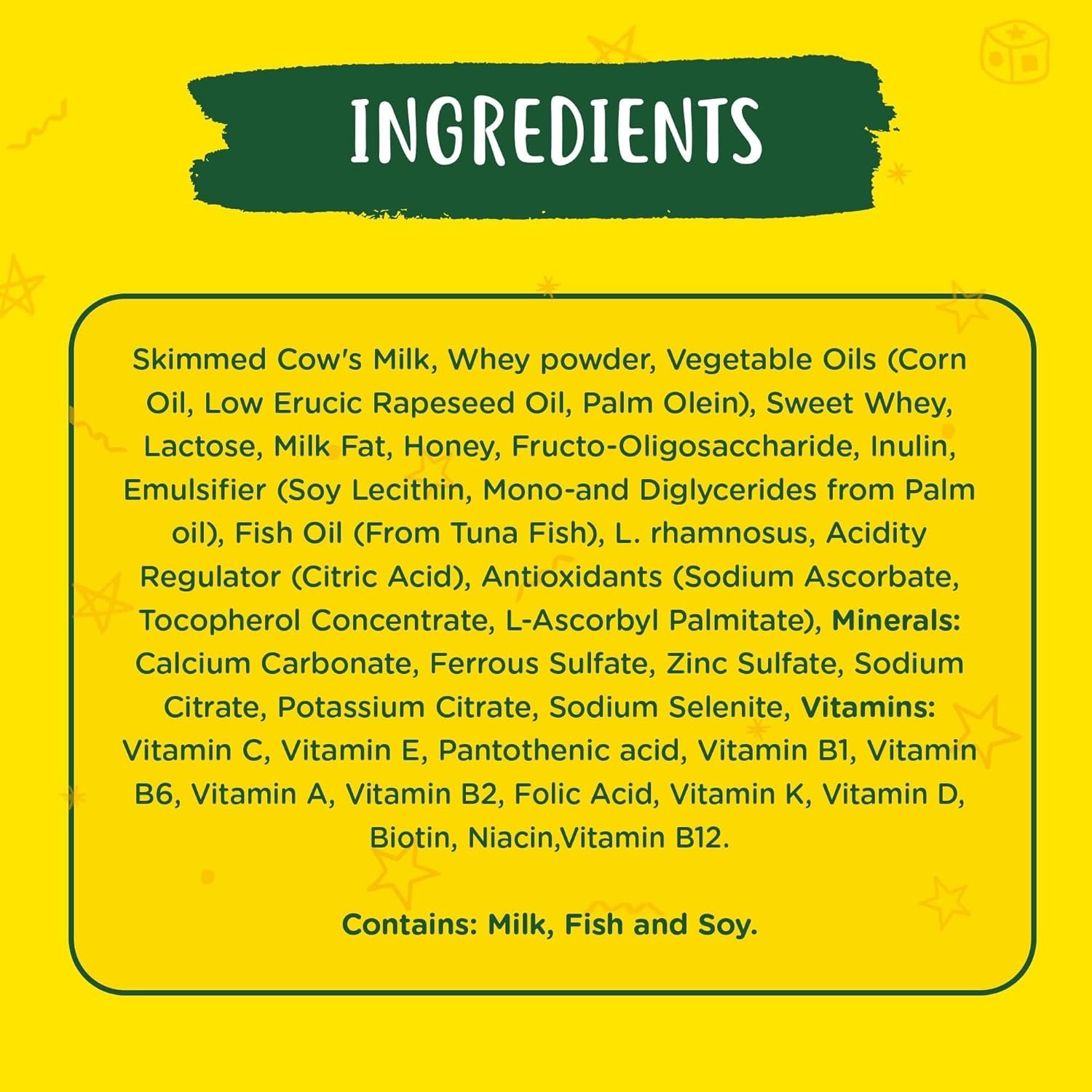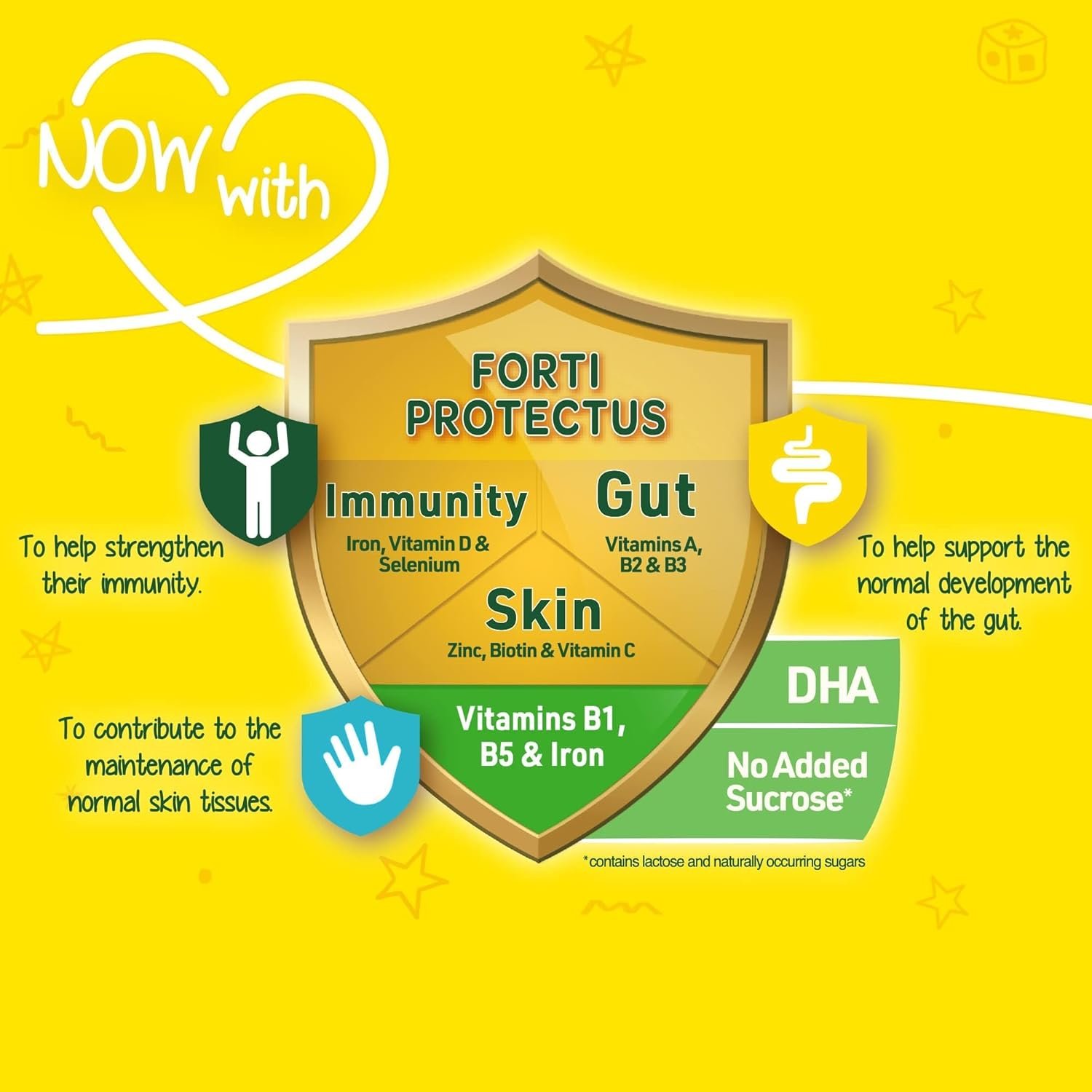 The formula contains prebiotics and probiotics, supporting good digestive health and nutrient absorption. Its milk-based composition provides high-quality protein and calcium to help build strong bones and muscles.