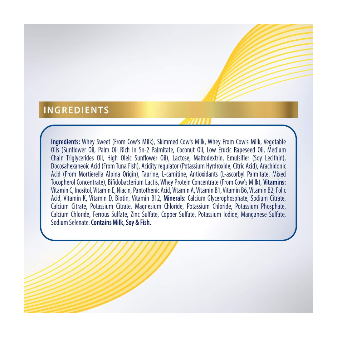 This formula includes important brain nutrients like DHA, ARA, and choline which play a key role in the development of the brain, nervous system, and vision. Additionally, it contains a carefully balanced mix of vitamins and minerals such as calcium, iron, and zinc, which support bone development, boost the immune system, and improve metabolic functions.
