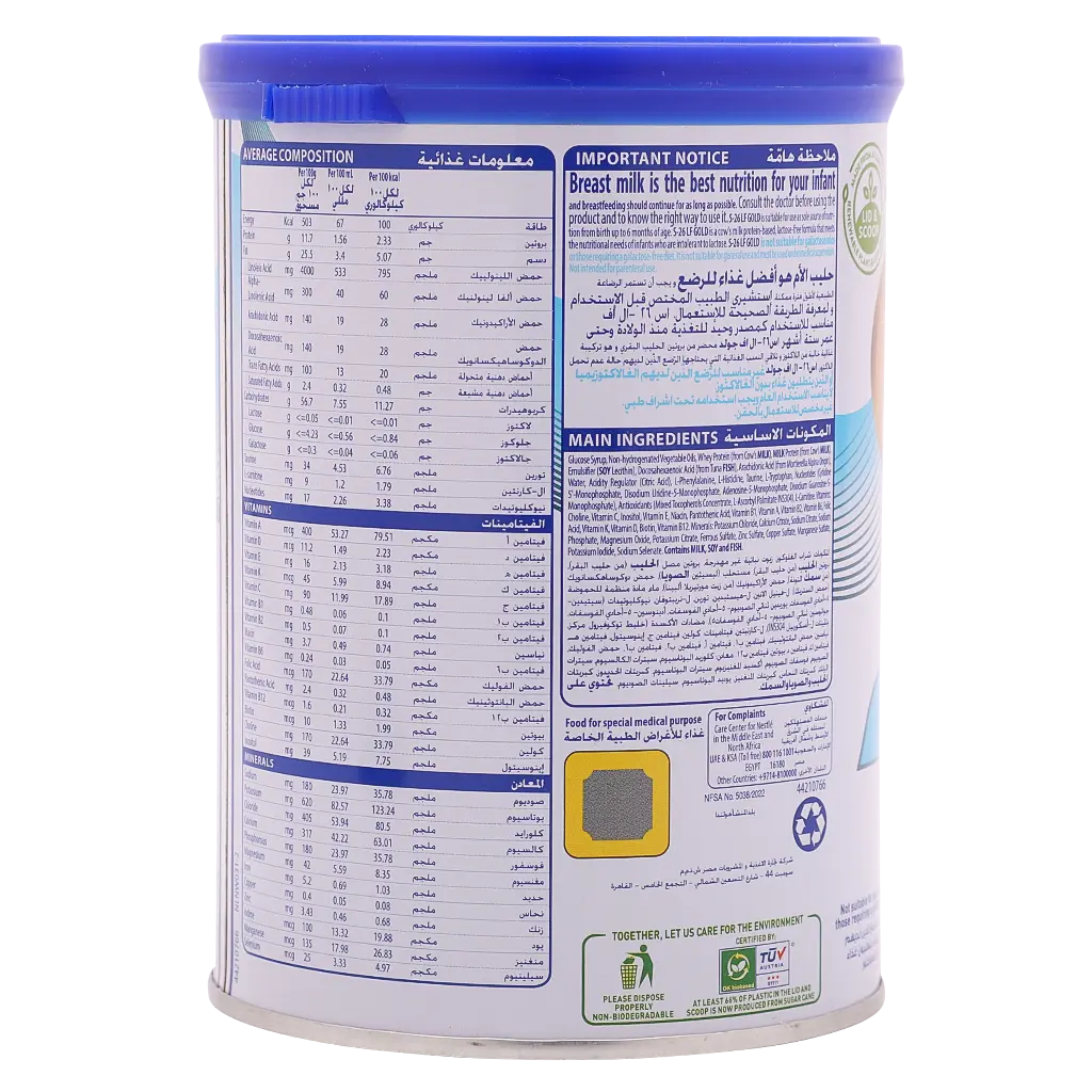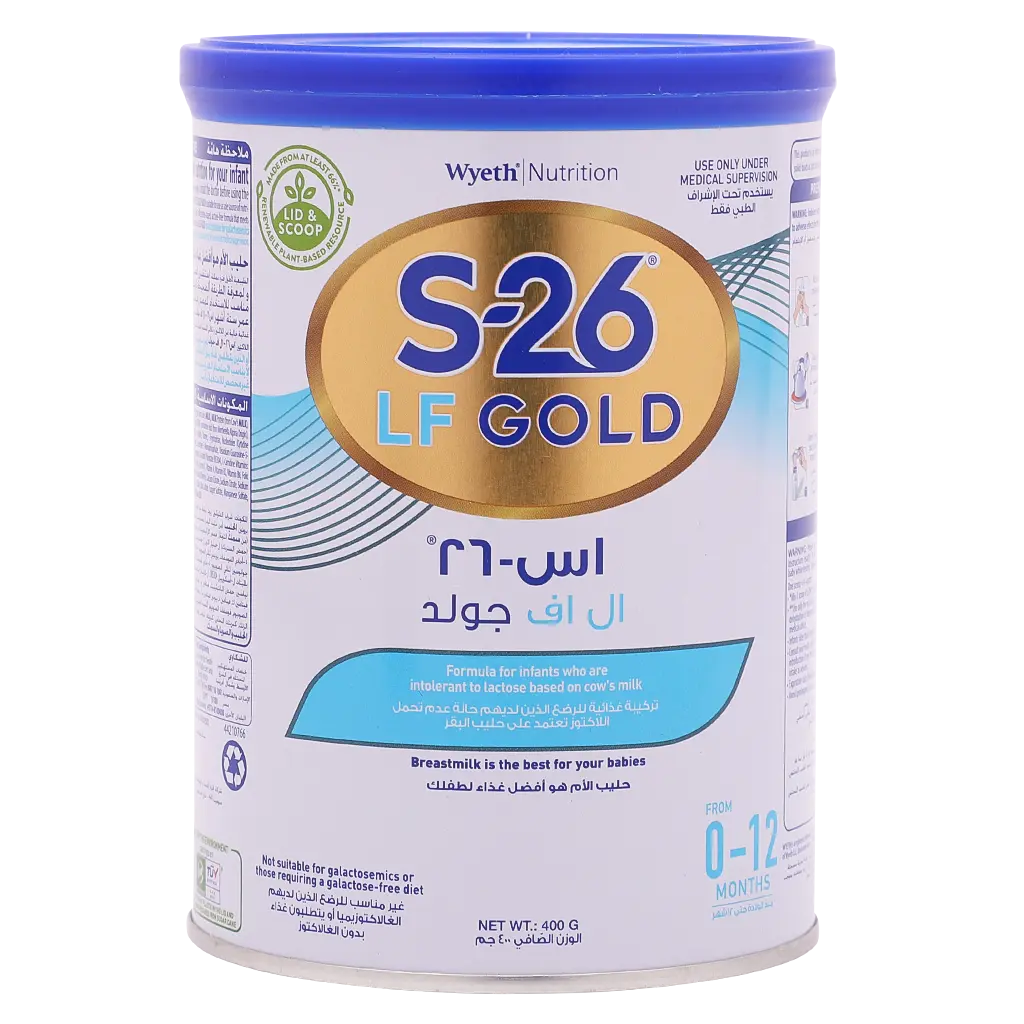 S26 Gold LF 0-12 Months 400 gm is a premium, lactose-free infant formula specially developed for babies who are unable to digest lactose, either due to congenital lactose intolerance or temporary lactase deficiency following diarrhea or infection. Suitable for infants from birth to 12 months, it ensures that your baby receives all essential nutrients needed for healthy growth and development during the first year of life.