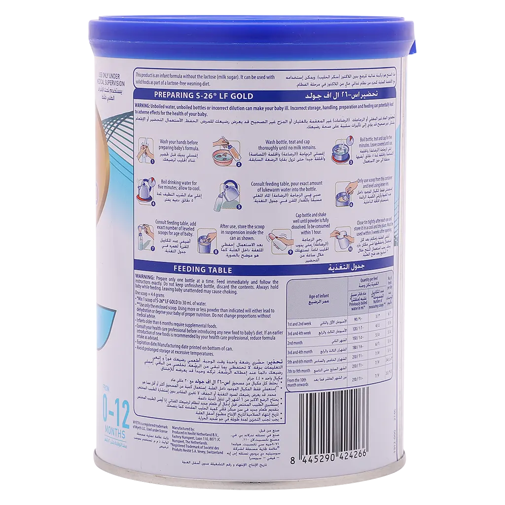 Designed to be gentle on tiny tummies, S26 Gold LF helps minimize discomfort associated with lactose intolerance, such as bloating, gas, and colic. Its high-quality protein and fat blend also supports healthy digestion and nutrient absorption.